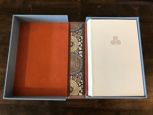 - Front cover features a foiled triskelion (Celtic Spiral Knot), symbolizing growth, rebirth, and the divine
