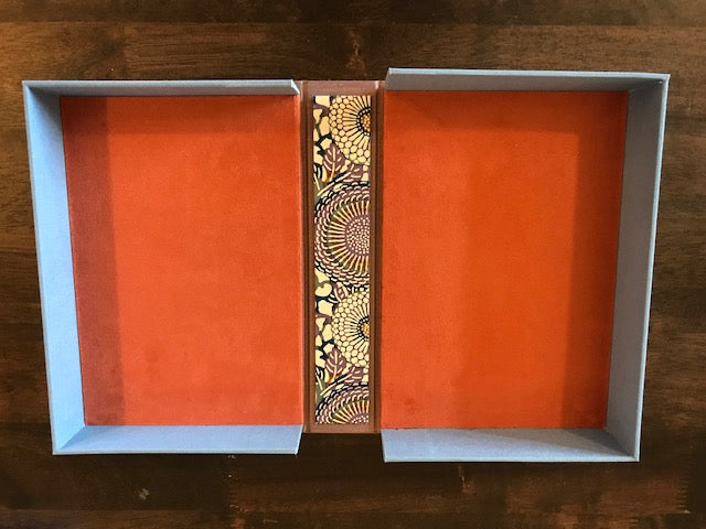 - Made from thick book board, covered in Japanese Ginga Bronze book cloth