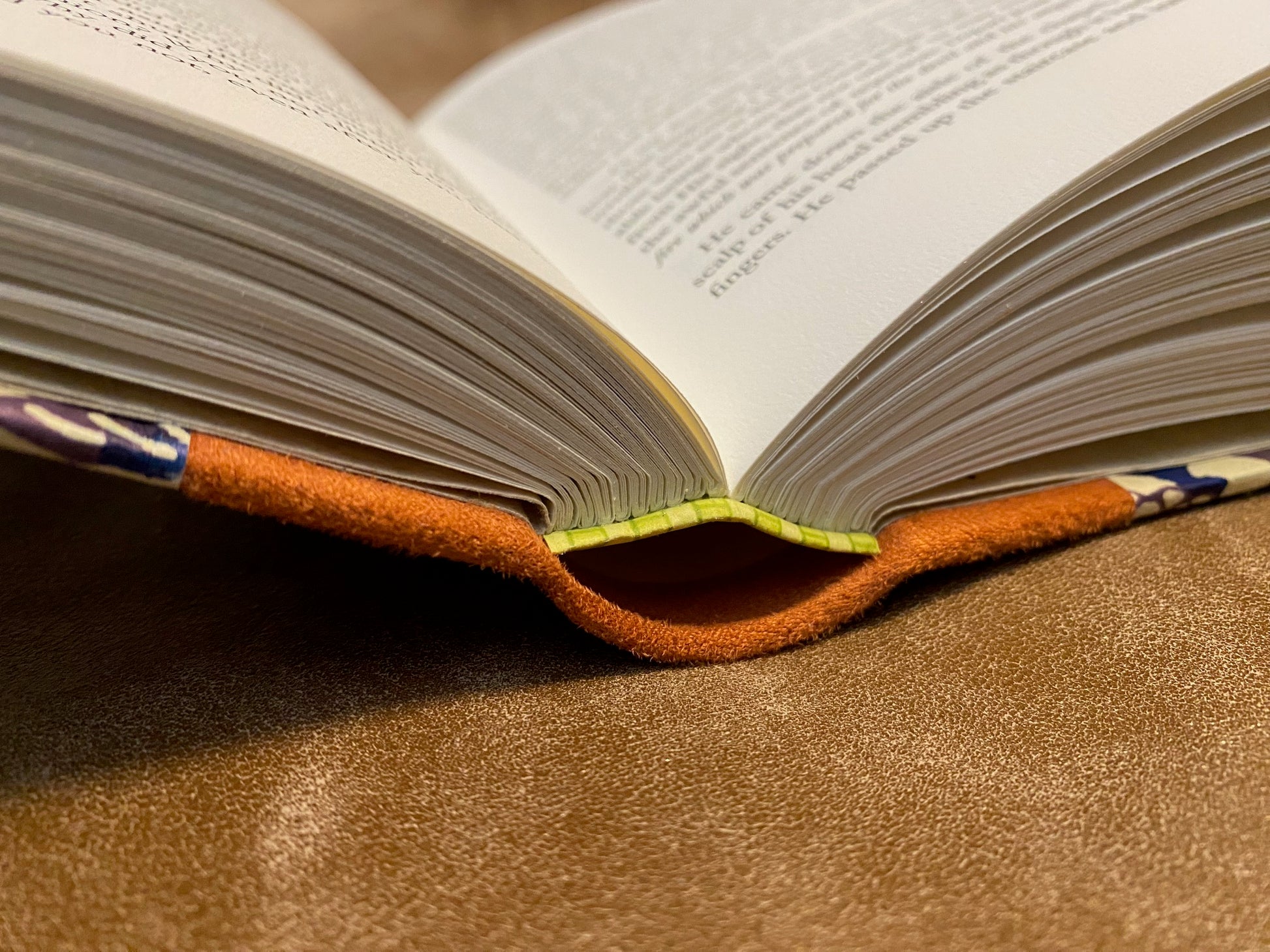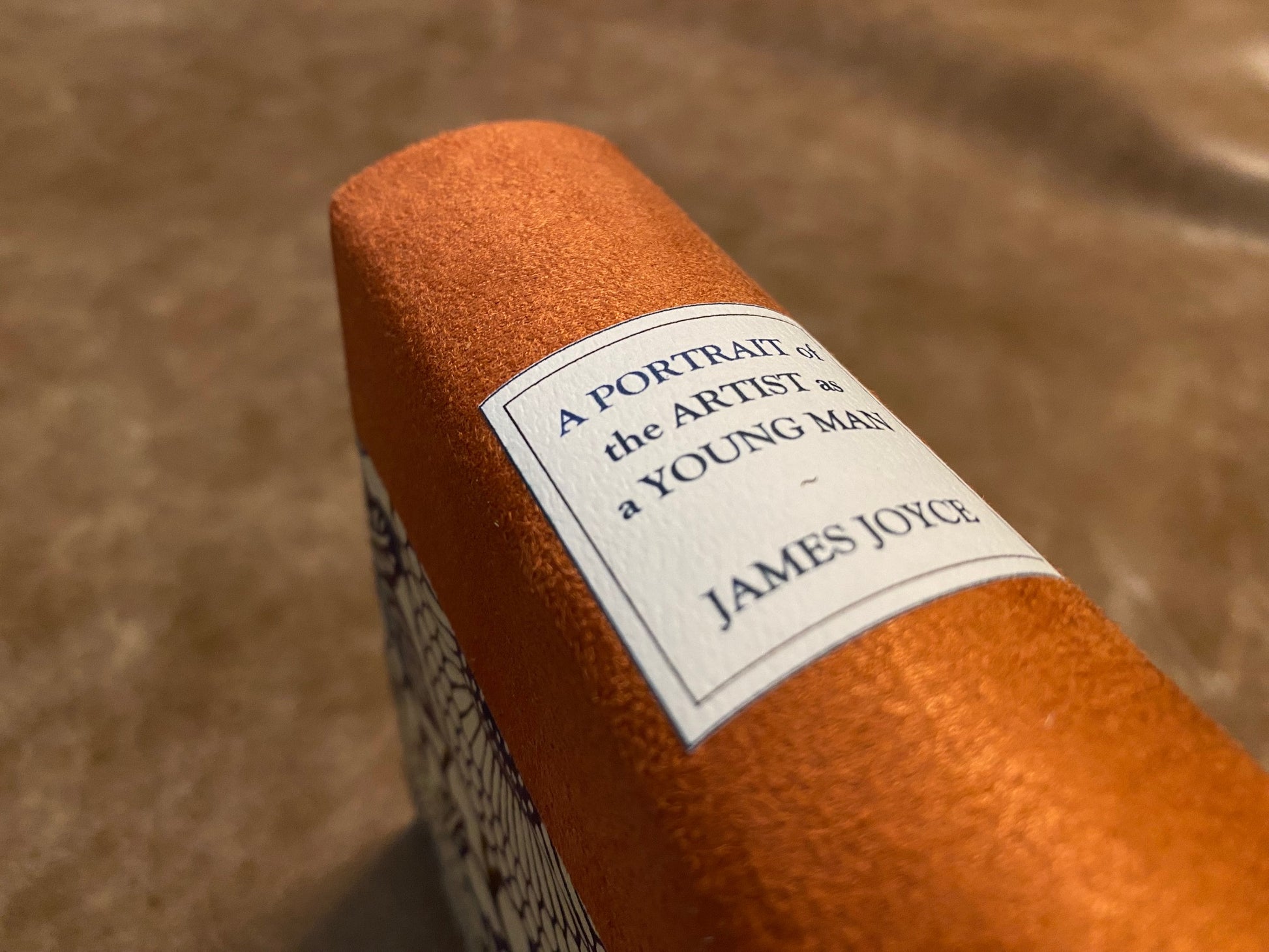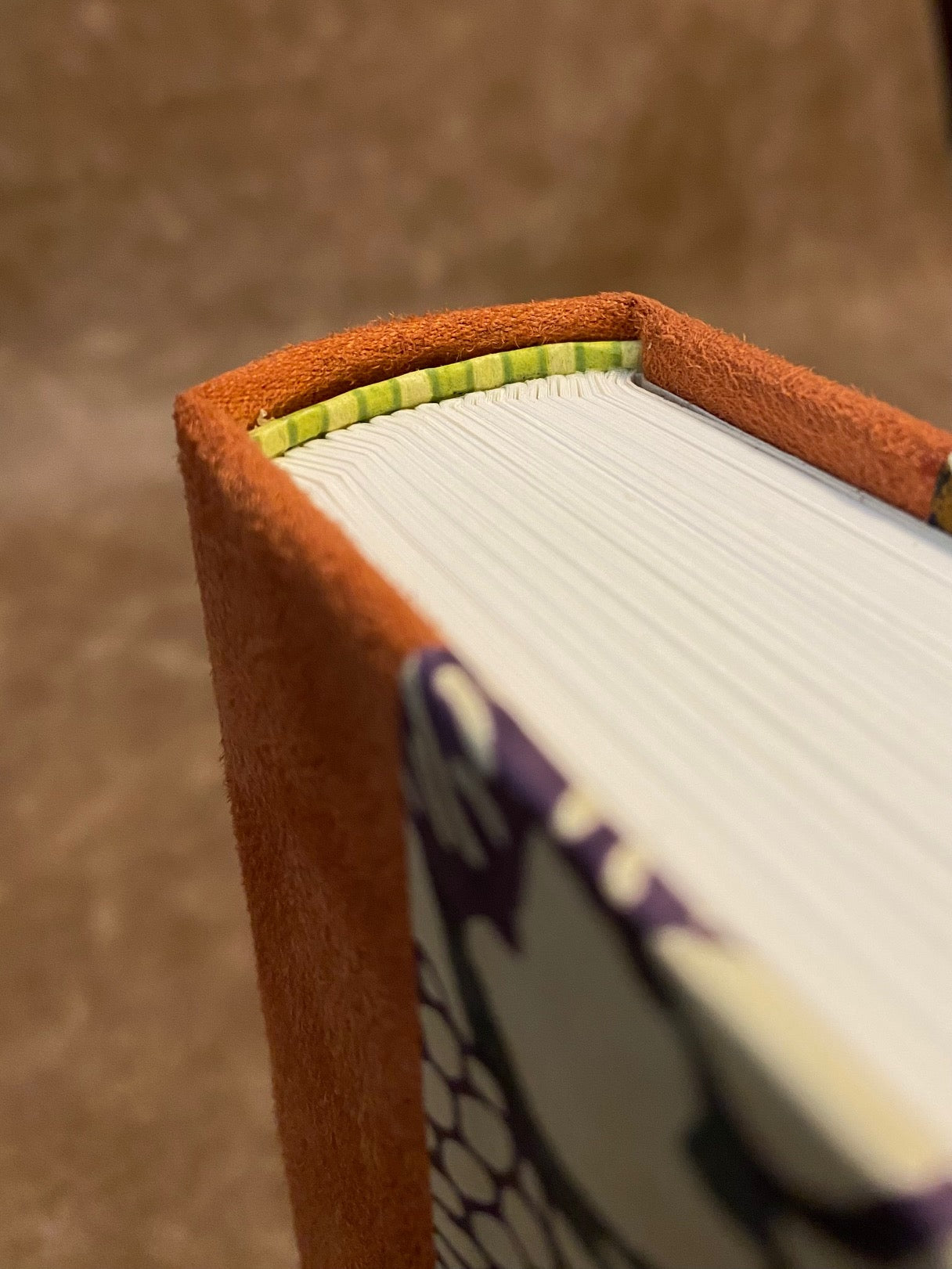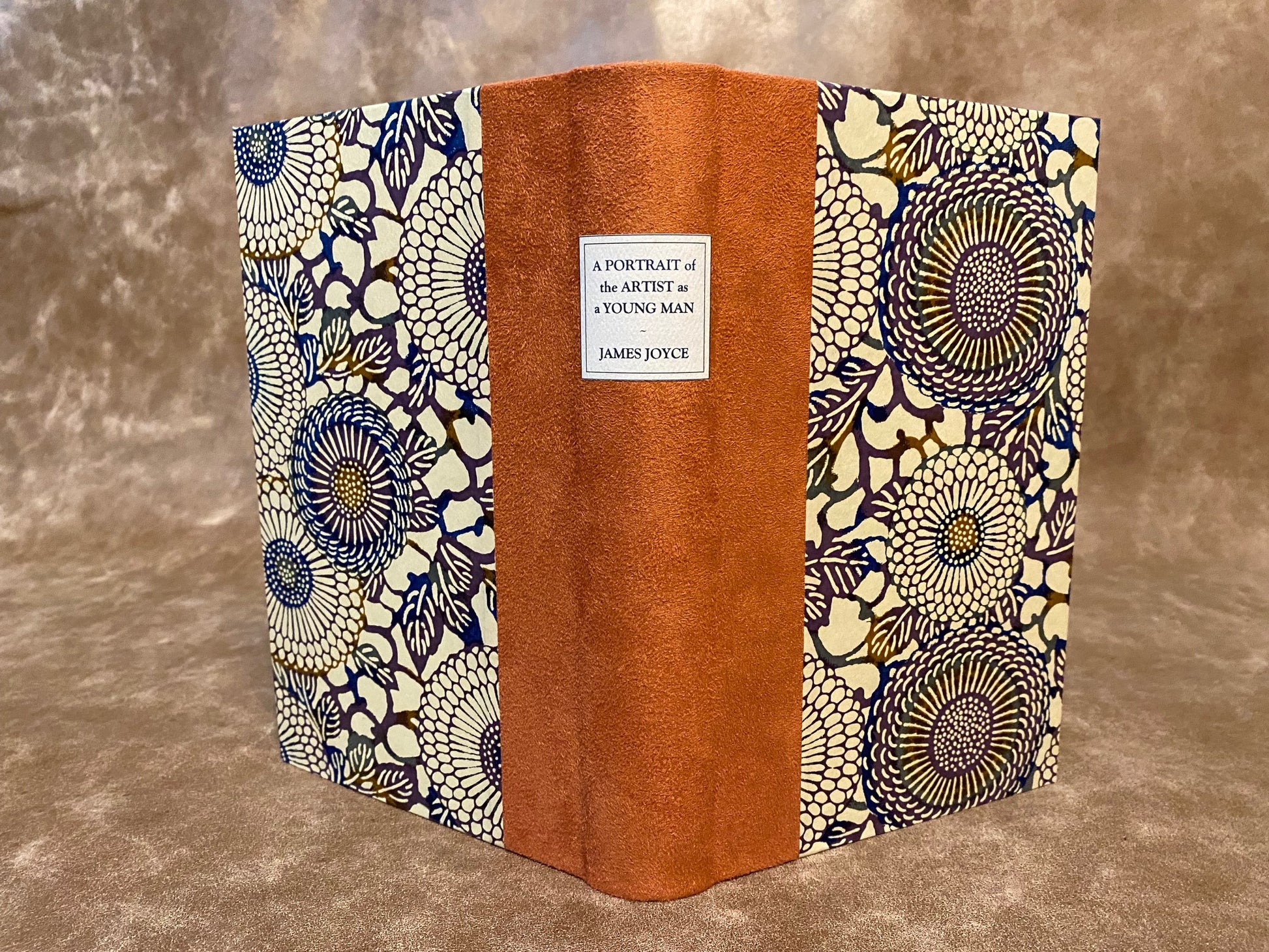 - Binding: Half-bound in heavy copper orange suede cloth