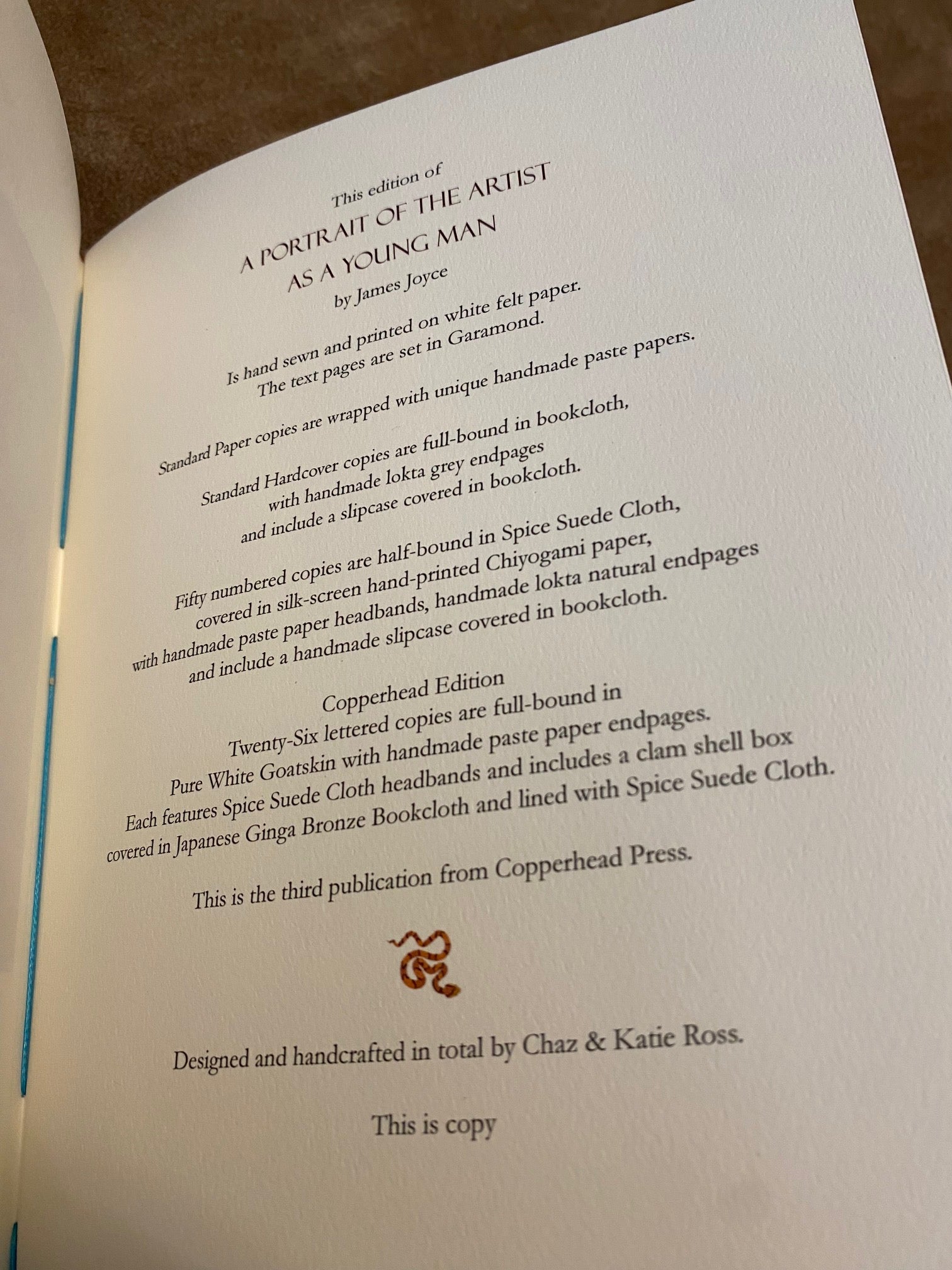 - Slipcase: Constructed from thick book board and covered in Verona blue book cloth