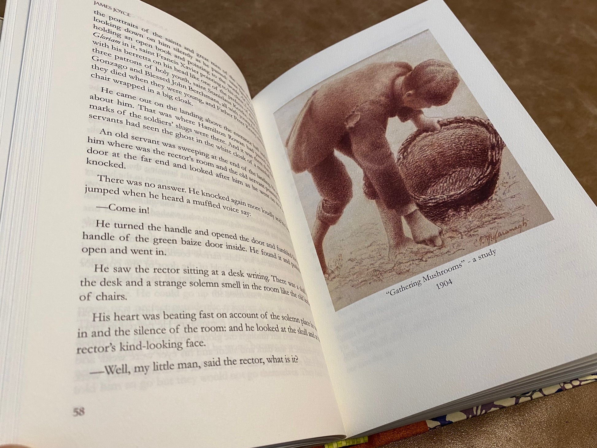 Inside, you will find 10 illustrations by Dublin-born artist Joseph Malachy Kavanagh, whose life coincided with that of James Joyce. Kavanagh was well known for his oil paintings and etchings, which capture coastal landscapes, riverside scenes, and other aspects of rural life in Ireland, France, and Belgium.