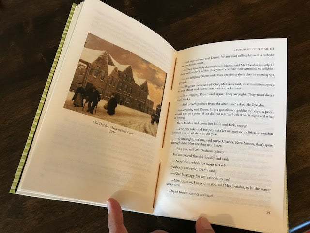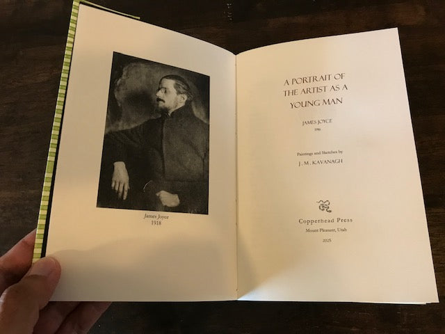 Inside, you will find 10 illustrations by Dublin-born artist Joseph Malachy Kavanagh, whose life coincided with that of James Joyce. Kavanagh was well known for his oil paintings and etchings, which capture coastal landscapes, riverside scenes, and other aspects of rural life in Ireland, France, and Belgium.