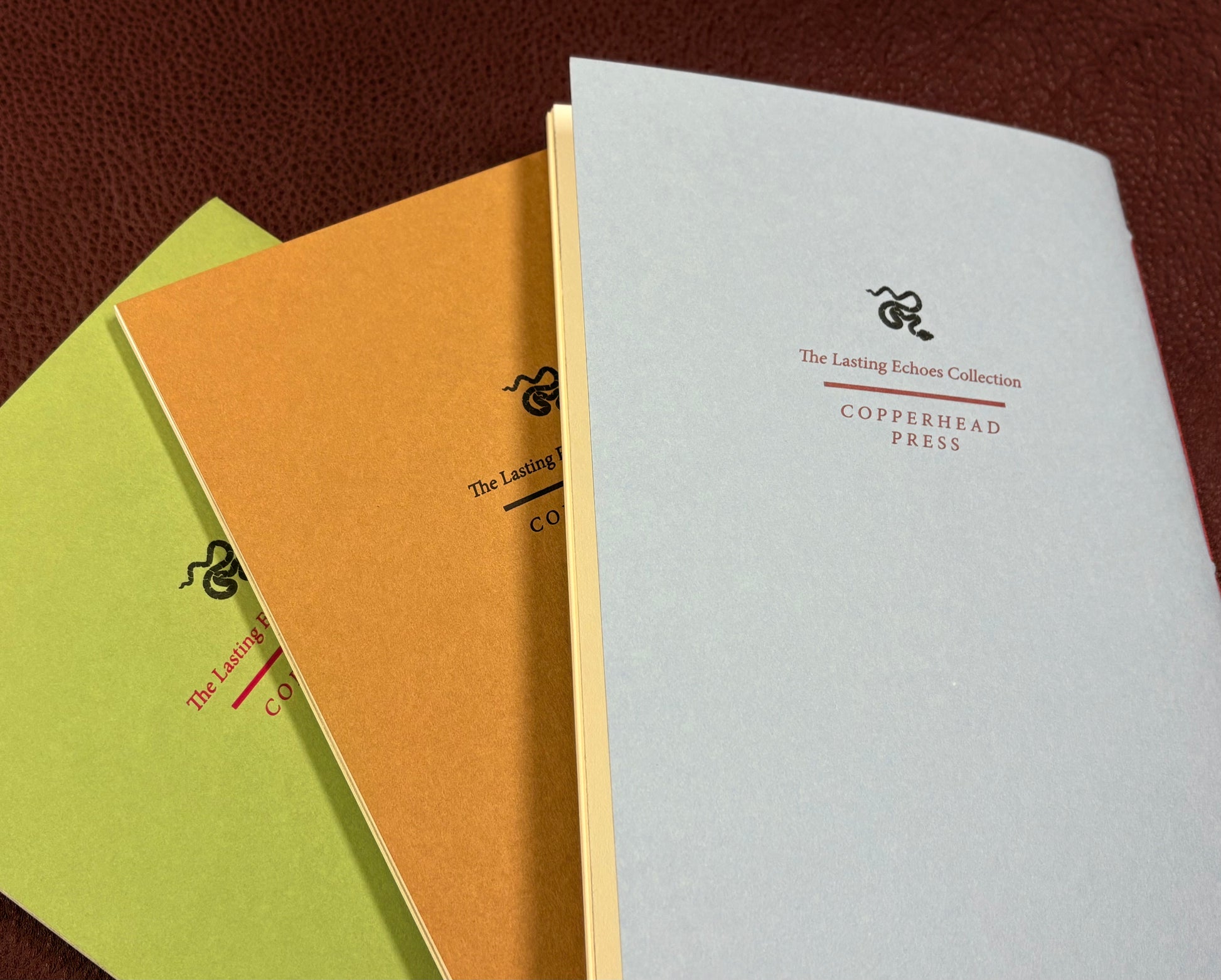 An optional slipcase is available with the set, specially designed to house any three chapbooks from the Lasting Echoes collection. It will also be offered separately in the future for readers who wish to build or expand their set over time. Slipcases will be made to order.