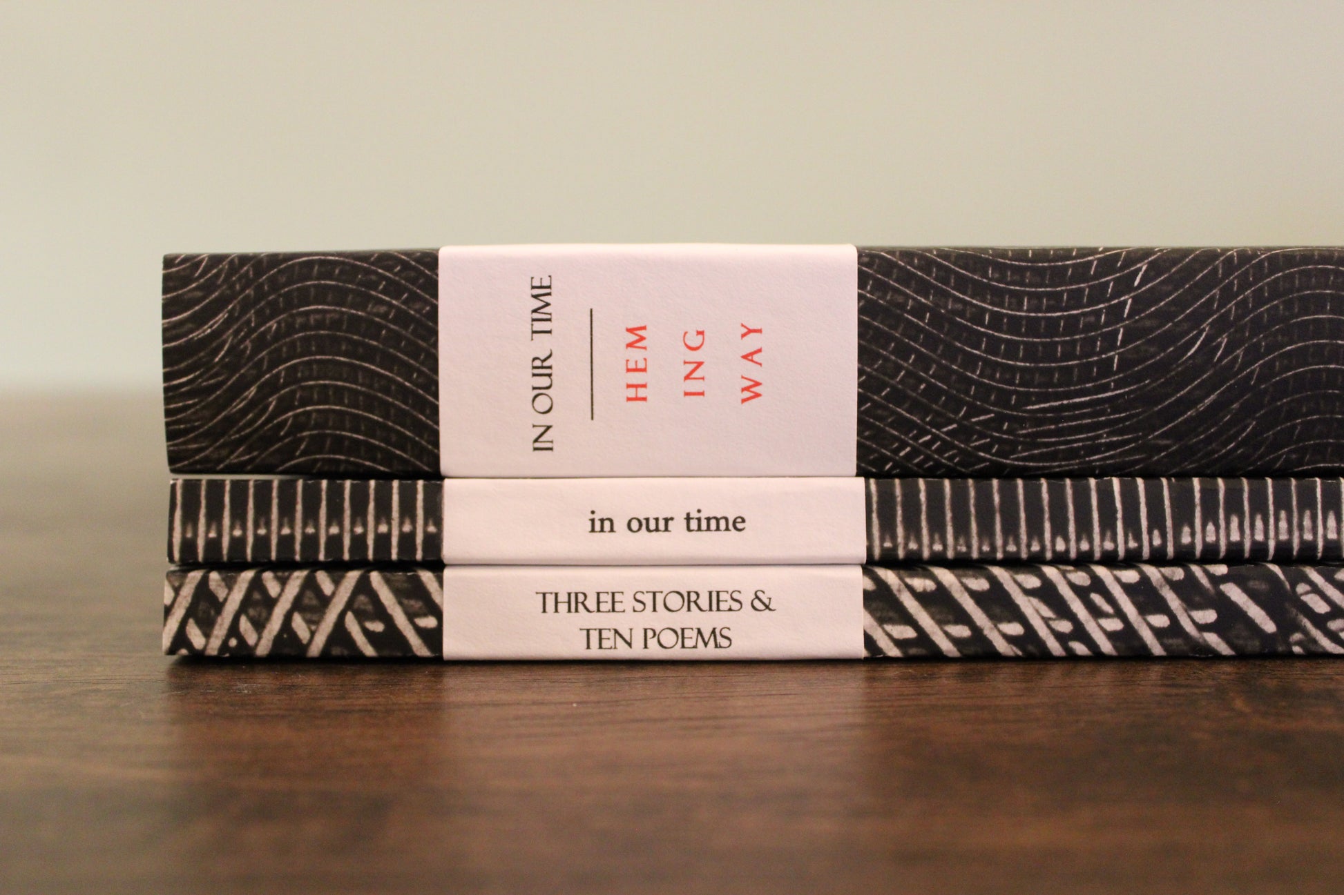 - Three Stories & Ten Poems (1923) with paste paper wrapper
