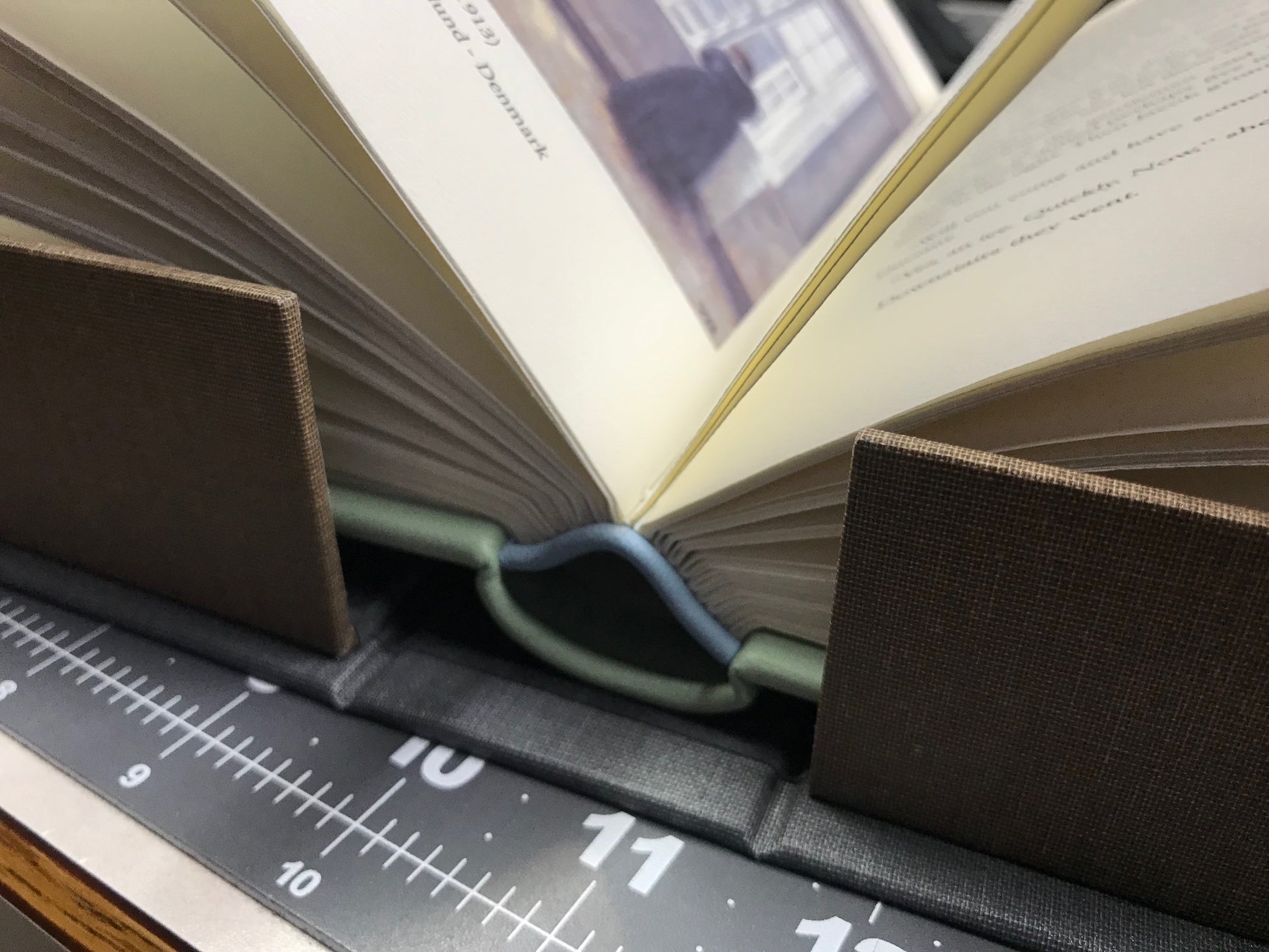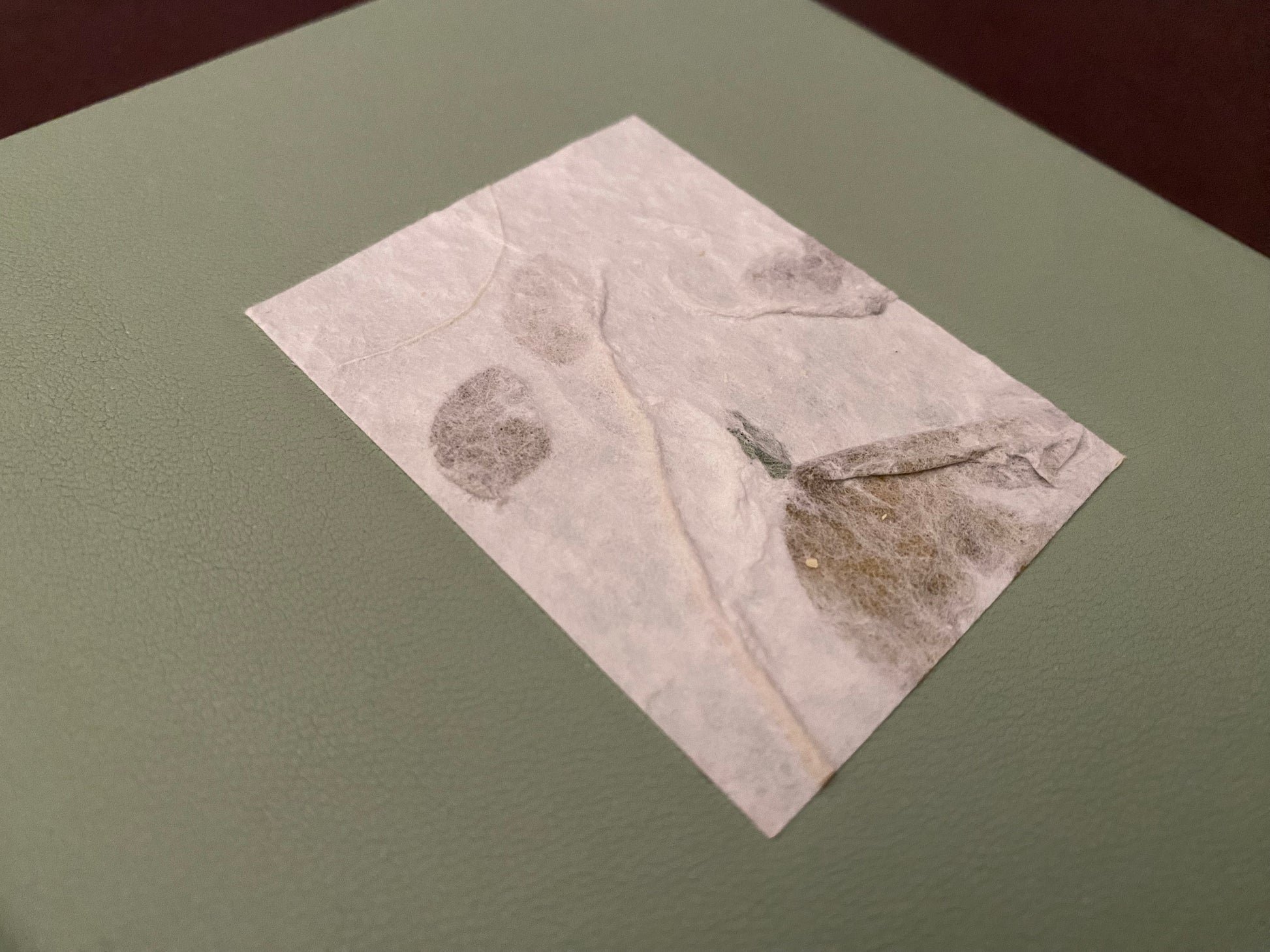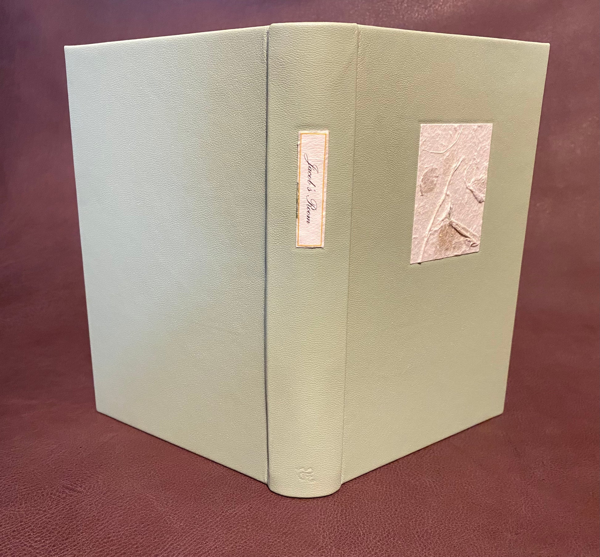 - Endpapers made from natural cotton paper with real leaf inclusions, sewn to the text block for extra strength
