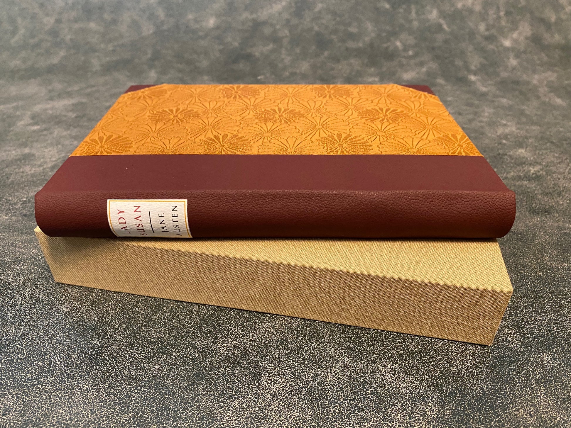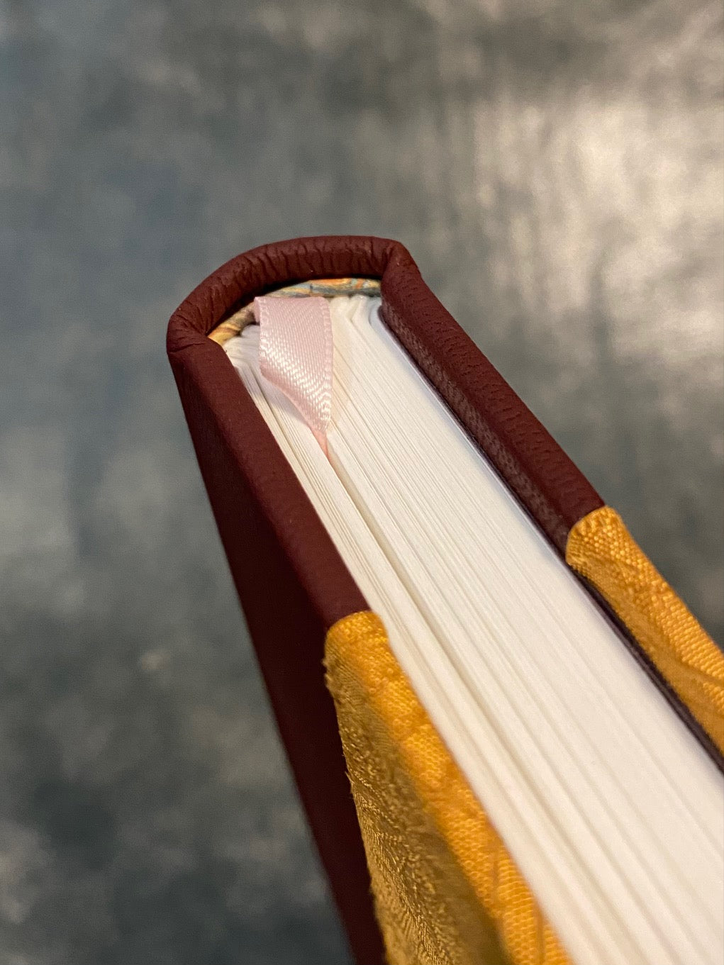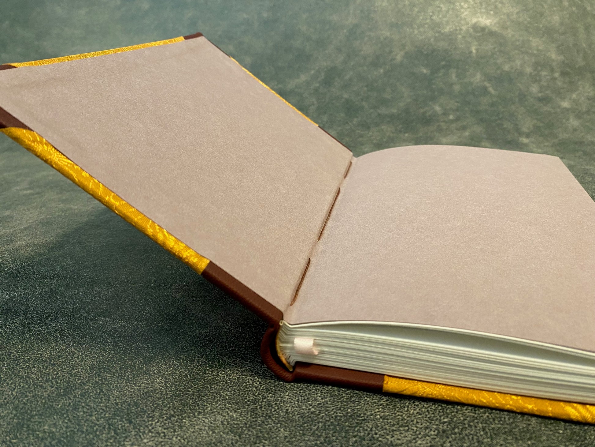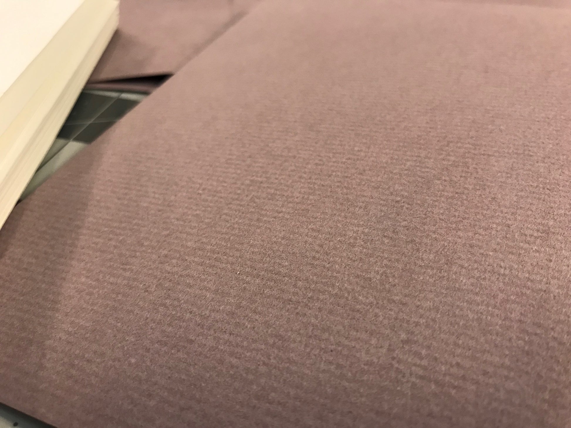 - Lilac Bugra endpapers, high-quality mould-made paper from Hahnemuhle Mill, Germany