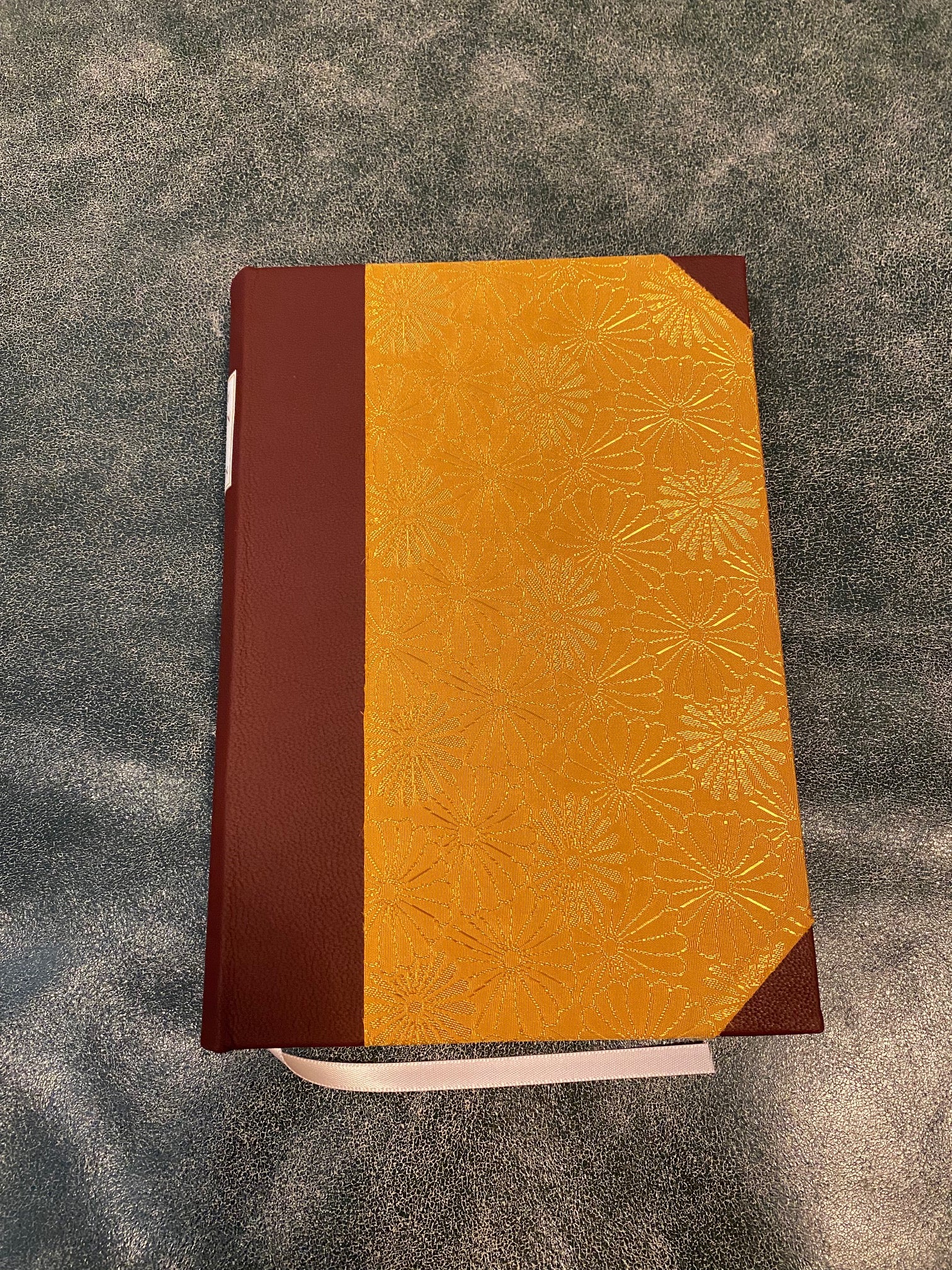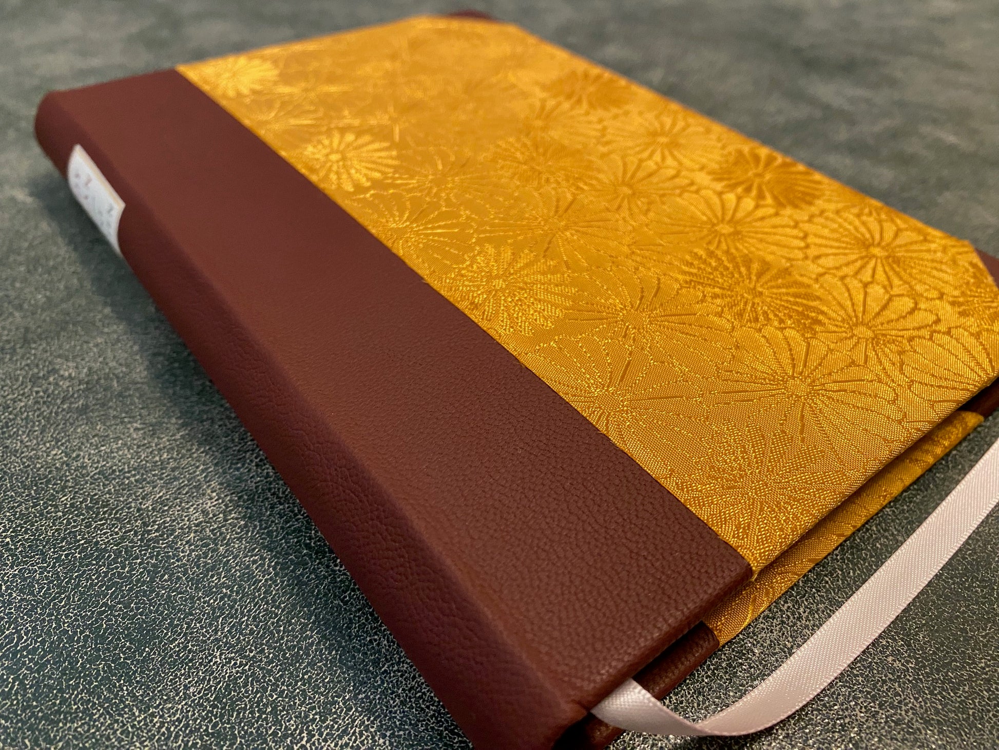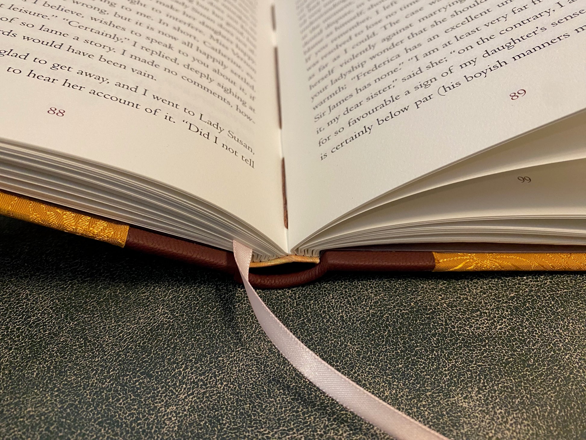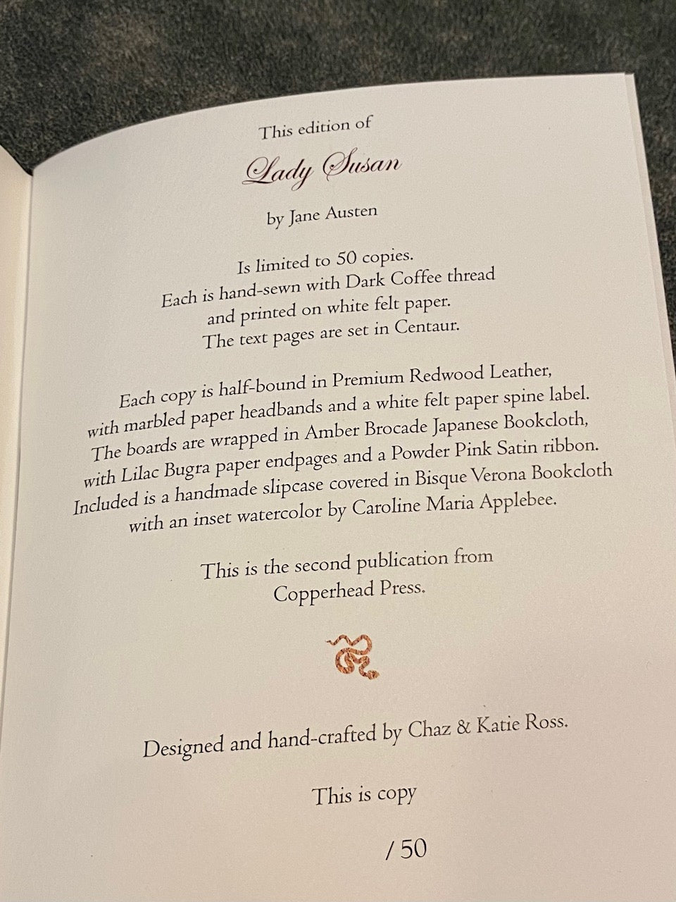 - Lilac Bugra endpapers, high-quality mould-made paper from Hahnemuhle Mill, Germany