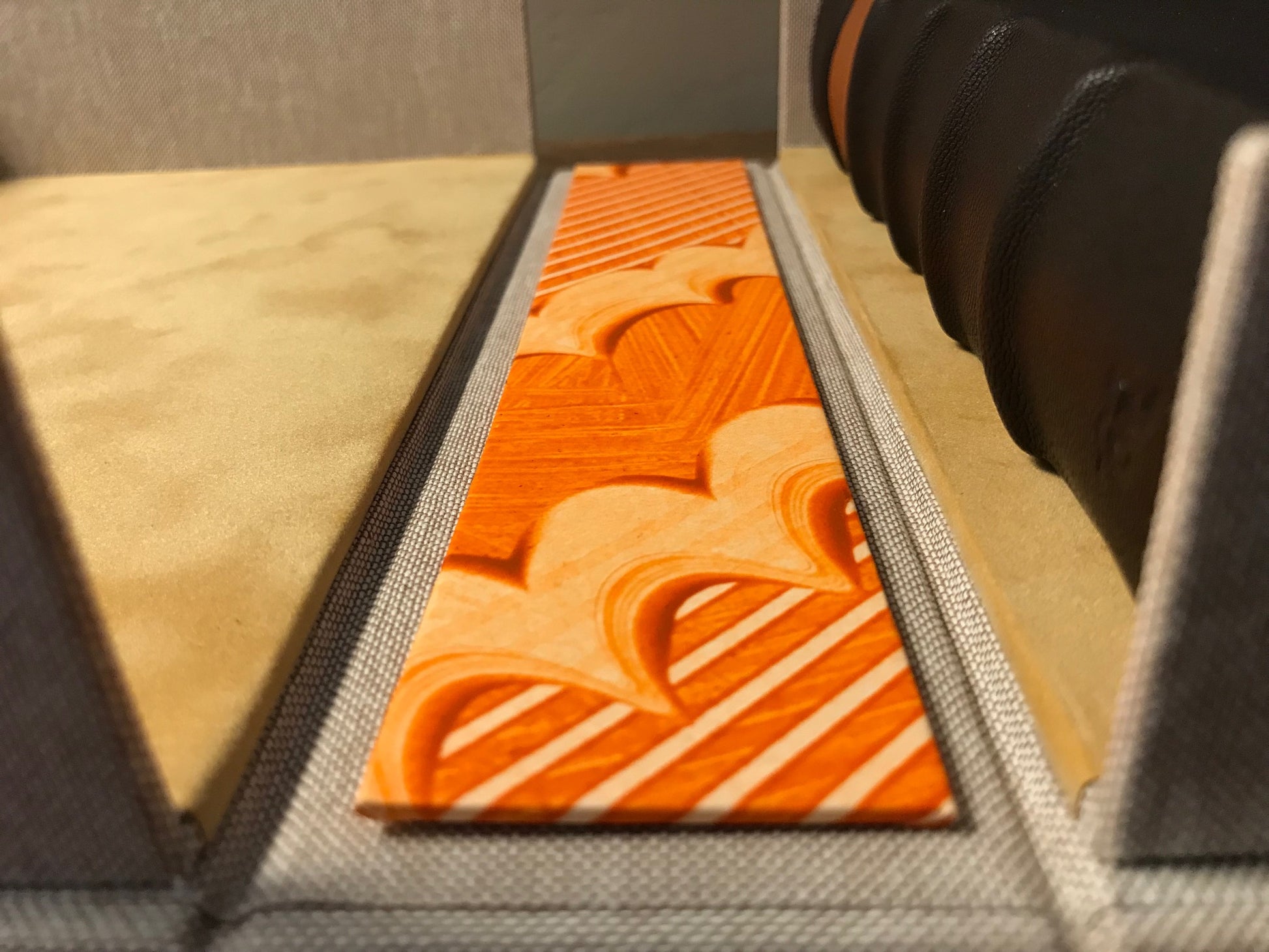 - Endpapers made from unique handmade paste papers, sewn to the text block for extra strength